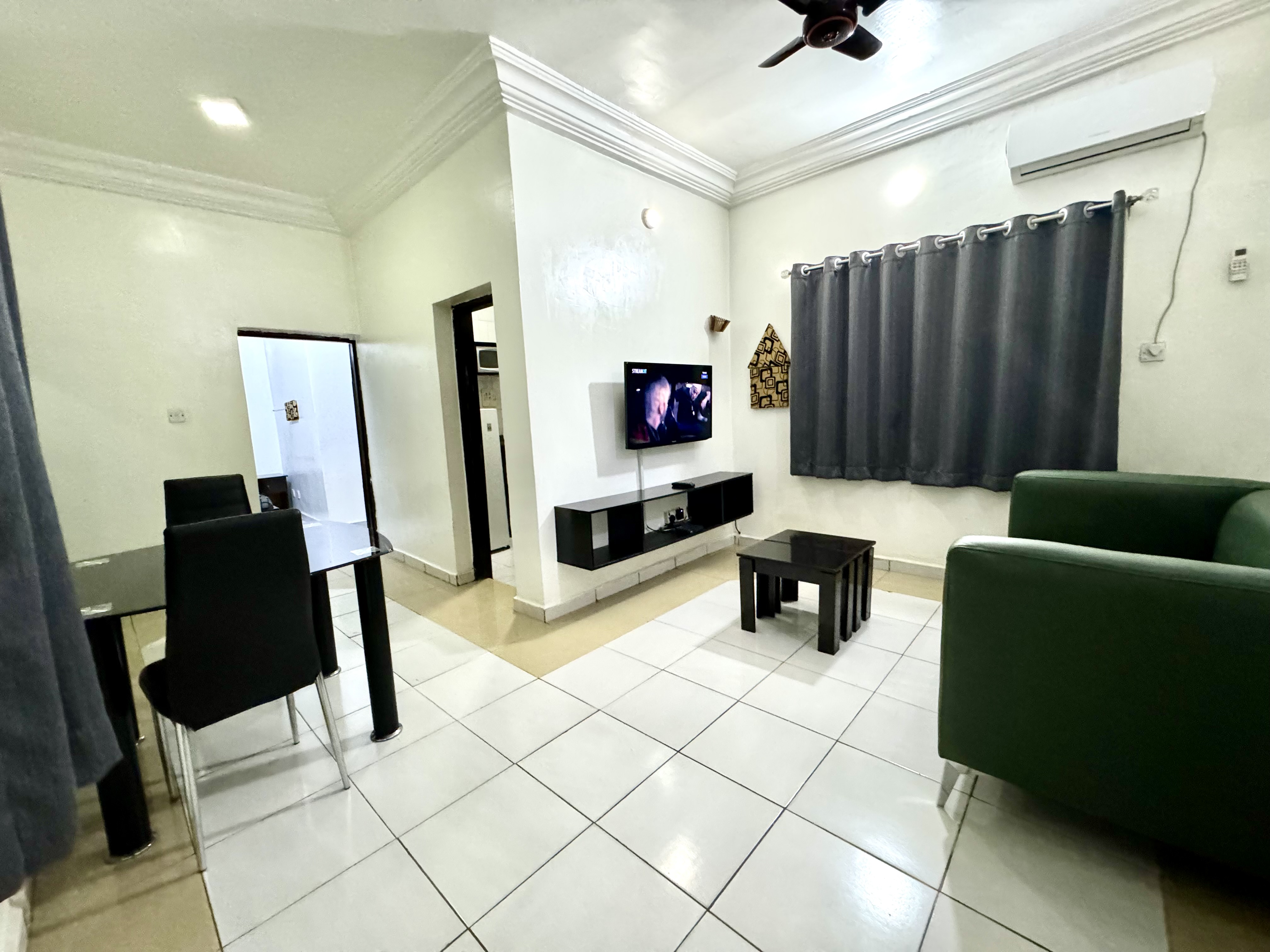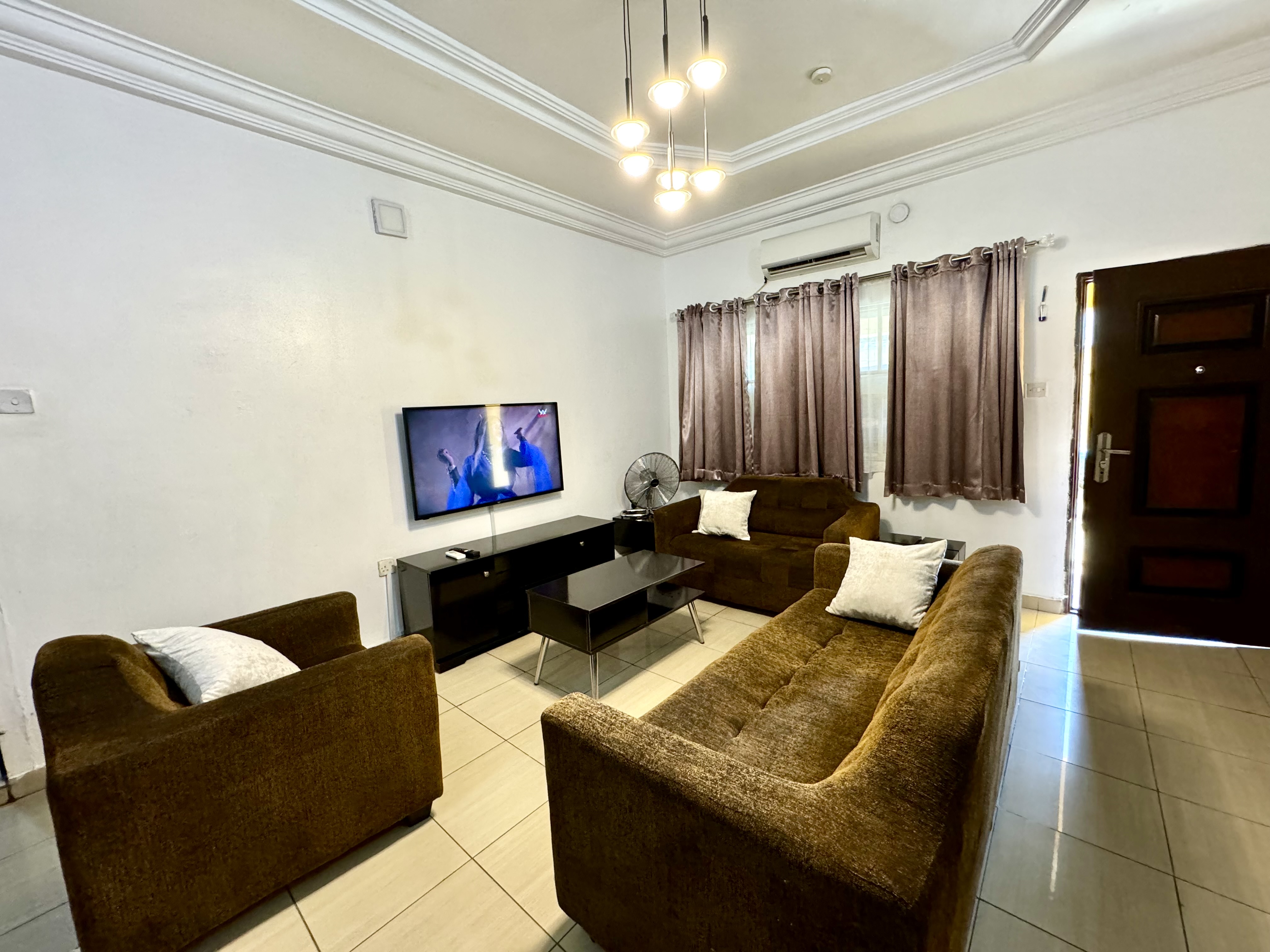 Centrally located in a clean & Quite street, a walk distance to supermarket/ pharmacies and 7mins drive to jabi lake mall (that has cinemas, eateries, shoprite, game etc)