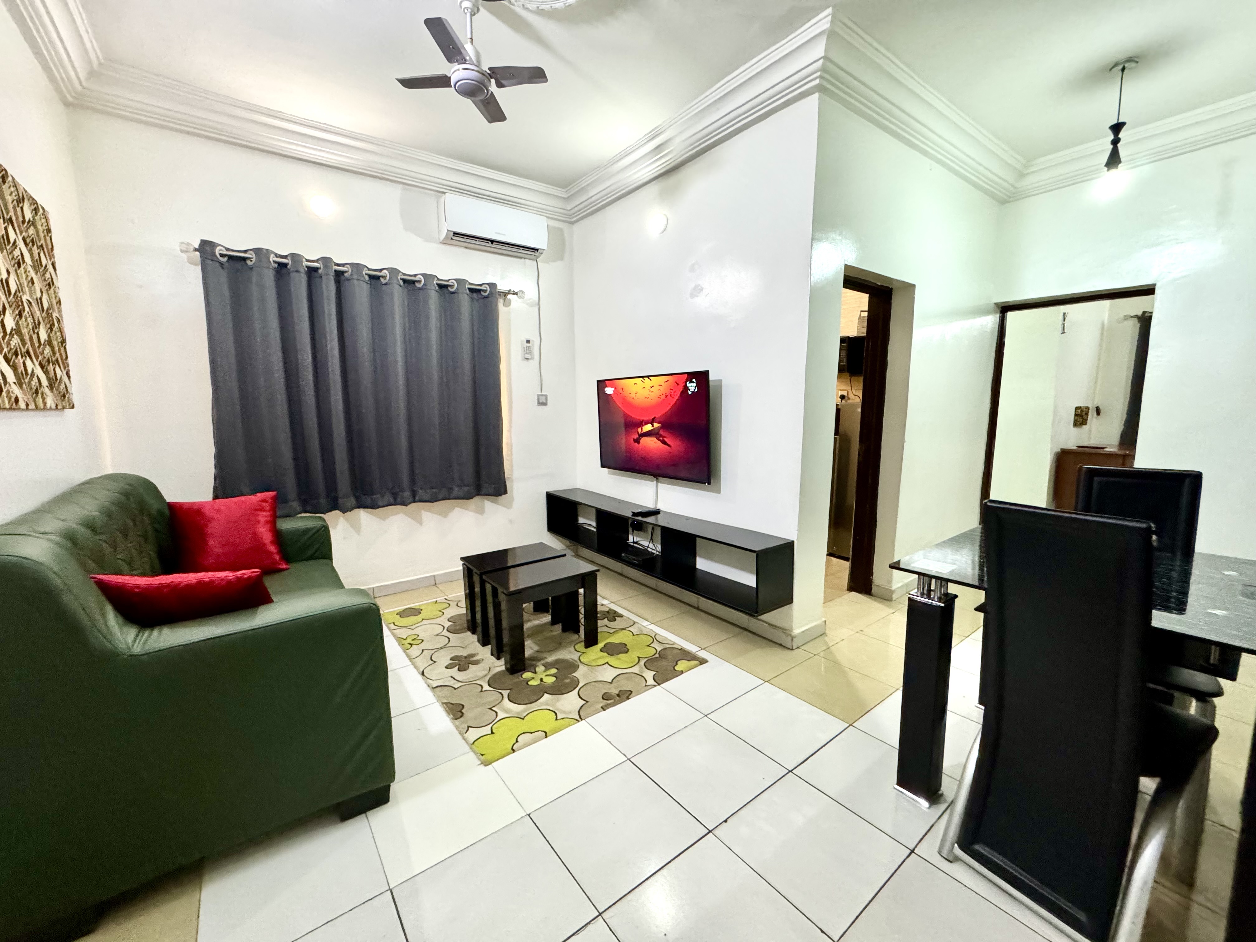 Centrally located in a clean & Quite street, a walk distance to supermarket/ pharmacies and 7mins drive to jabi lake mall (that has cinemas, eateries, shoprite, game etc)